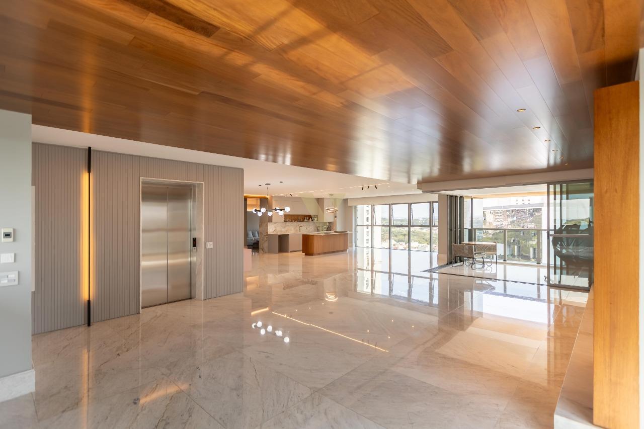 Com 431,49 m² privativos, o apartamento apresenta uma planta imponente e funcional: 3 suítes amplas, 5 banheiros, 4 vagas de garagem e uma área social deslumbrante, ideal para receber com elegância ou relaxar com total conforto.