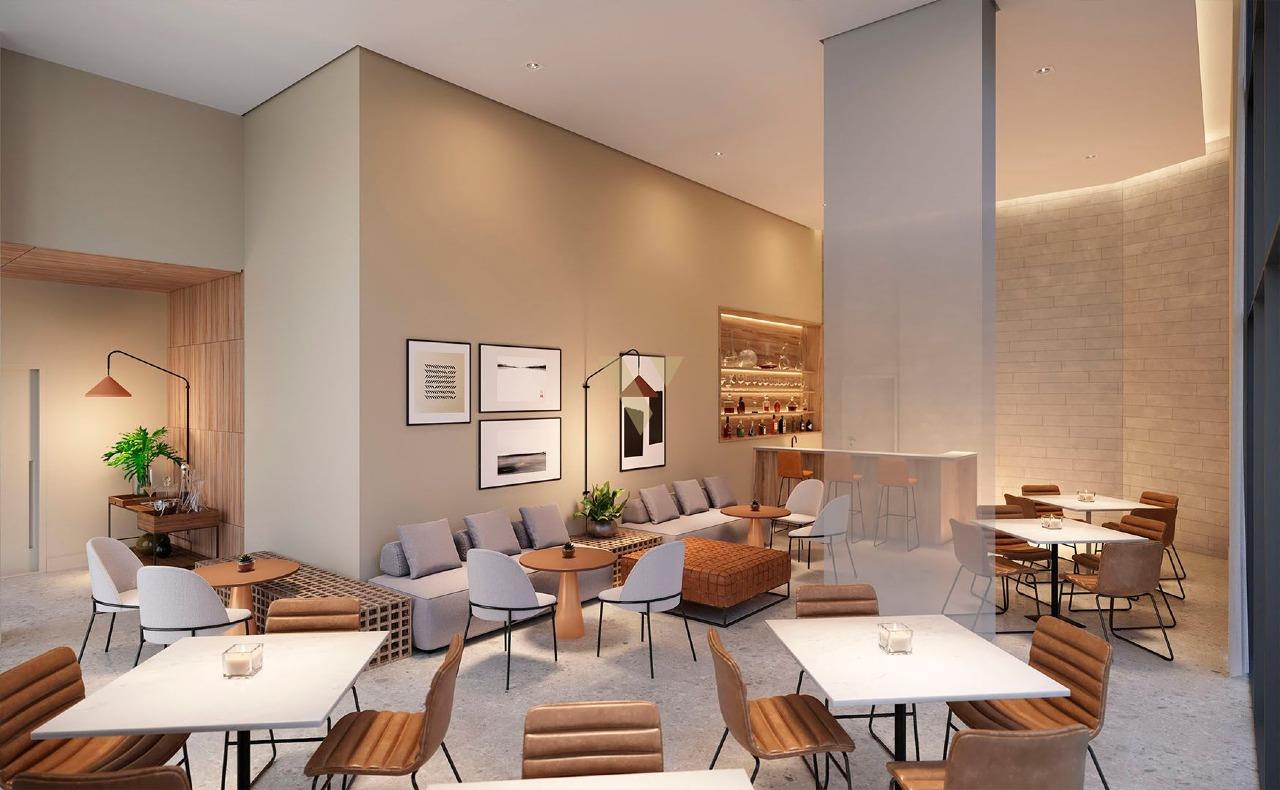 Entre os diferenciais estão lavanderia com equipamentos industriais, espaço delivery, infraestrutura para ar-condicionado, tomadas USB e fechadura biométrica, reforçando o conceito de praticidade e modernidade.