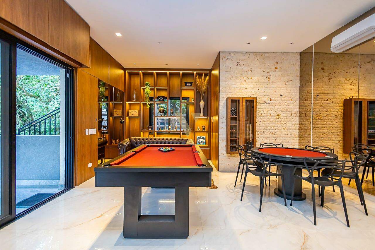 O imóvel ainda surpreende com uma incrível Man Cave equipada com pub, mesa de sinuca, poker e uma ampla sacada — um ambiente perfeito para lazer e entretenimento.