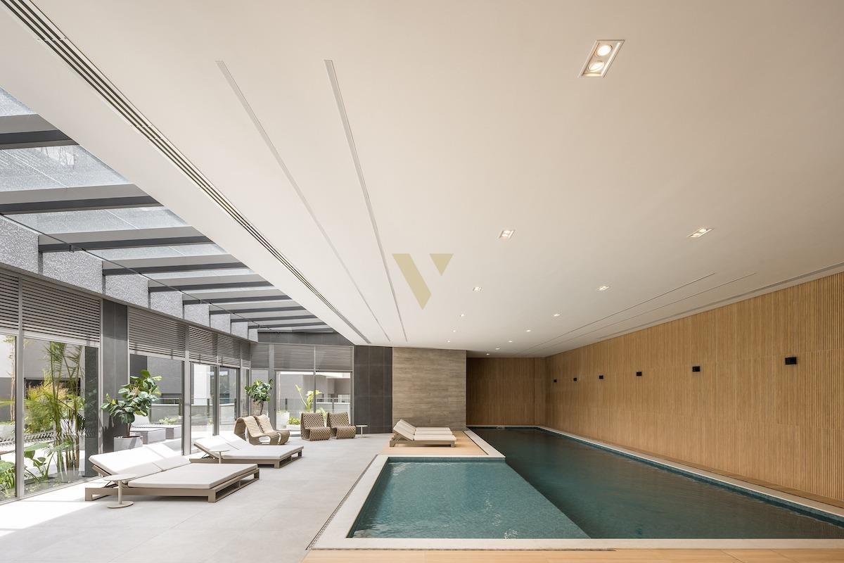 Os apartamentos contam com 193 m² de área privativa, 3 suítes, 4 vagas de garagem e depósito individual, além de alto padrão de acabamento. As áreas comuns são de alto padrão e completas: piscina coberta aquecida, academia equipada, salão de festas, espaço gourmet, quadra poliesportiva, sauna, spa, brinquedoteca, playground e pet place. Tudo integrado a um projeto paisagístico que valoriza a natureza e promove bem-estar.