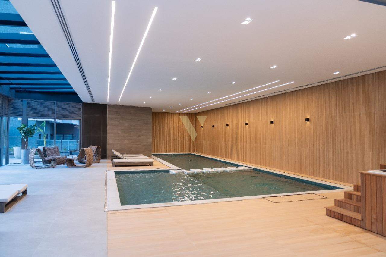 Os apartamentos contam com 193 m² de área privativa, 3 suítes, 4 vagas de garagem e depósito individual, além de alto padrão de acabamento. As áreas comuns são de alto padrão e completas: piscina coberta aquecida, academia equipada, salão de festas, espaço gourmet, quadra poliesportiva, sauna, spa, brinquedoteca, playground e pet place. Tudo integrado a um projeto paisagístico que valoriza a natureza e promove bem-estar.