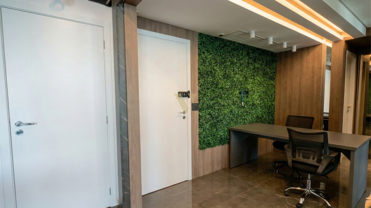 O imóvel conta com 70 m² de área privativa, distribuídos de forma inteligente, além de estar semi mobiliado, pronto para uso. Dispõe ainda de 2 banheiros, proporcionando maior comodidade para equipe e clientes.